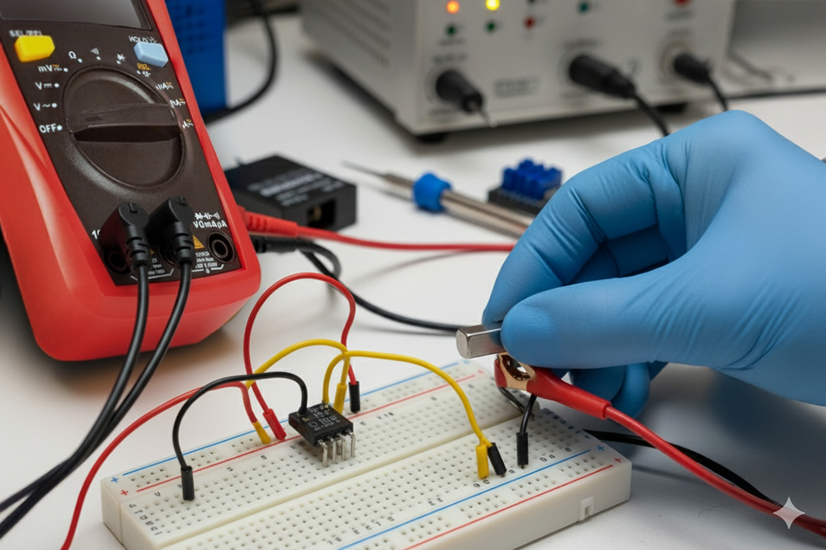 Если датчик успешно прошел проверку сопротивления, необходимо провести его функциональный тест под напряжением. Этот этап подтверждает, что датчик корректно реагирует на магнитное поле.