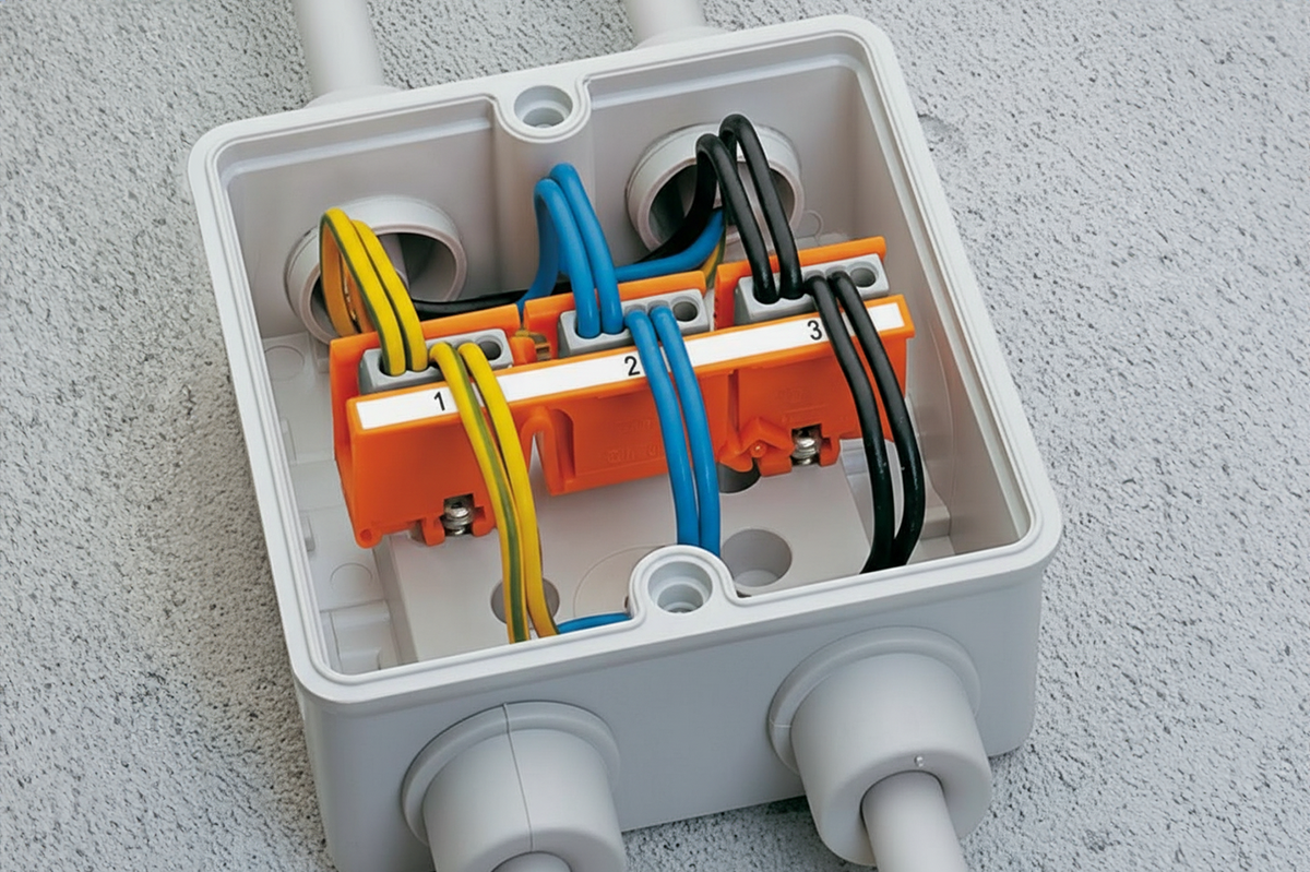 - Клеммники (WAGO или винтовые) — обеспечивают надежное и безопасное соединение проводов в распределительной коробке.