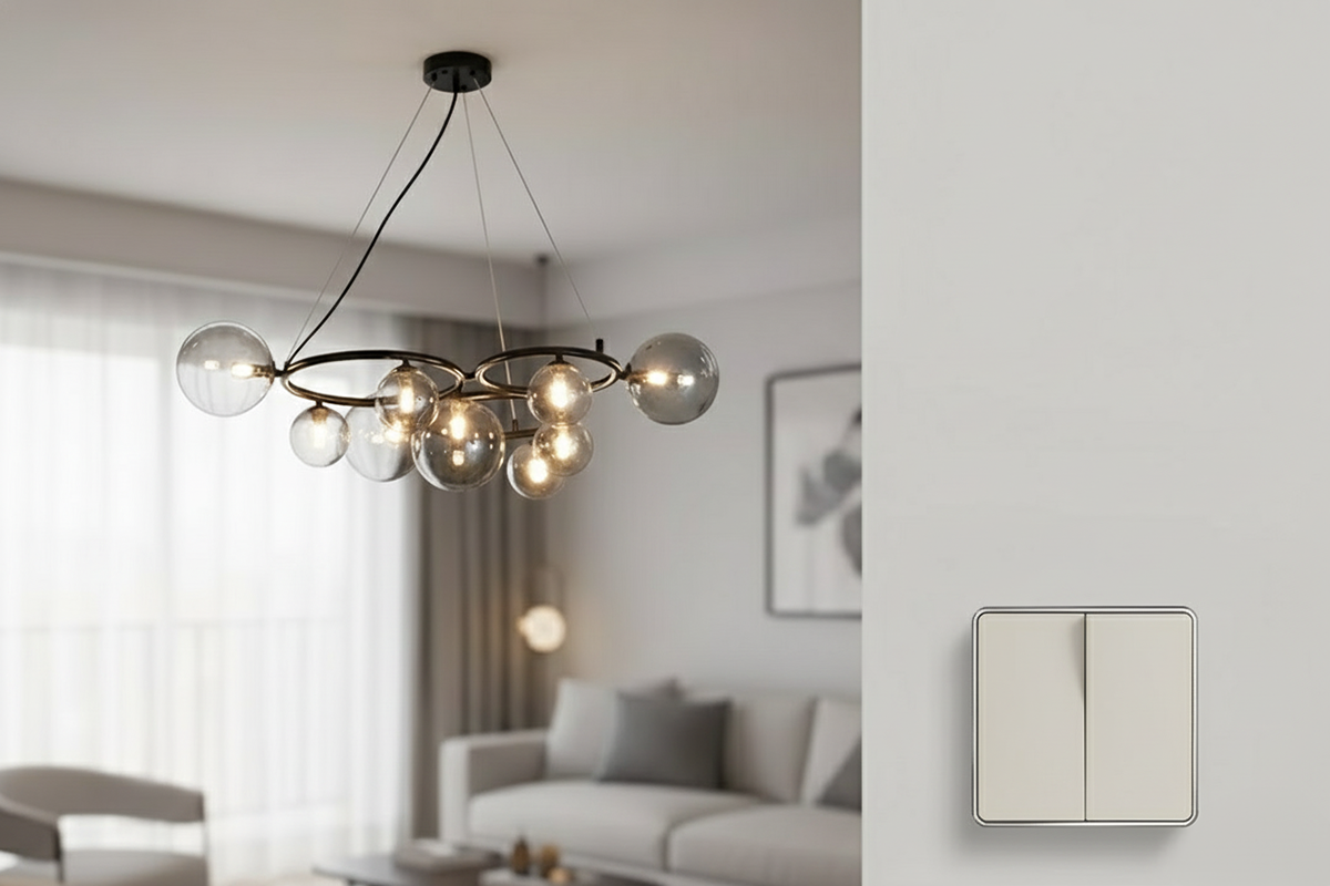Двухклавишный выключатель — это, по сути, два отдельных коммутационных аппарата, объединенных в одном корпусе. В отличие от одноклавишного, он управляет не одной, а двумя независимыми линиями освещения, что делает его более функциональным и удобным в использовании.