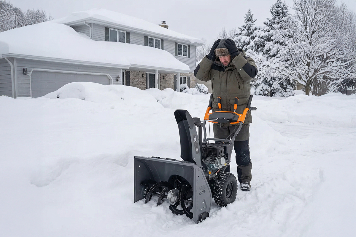 Как запускать бензиновый снегоуборщик в сложных условиях?