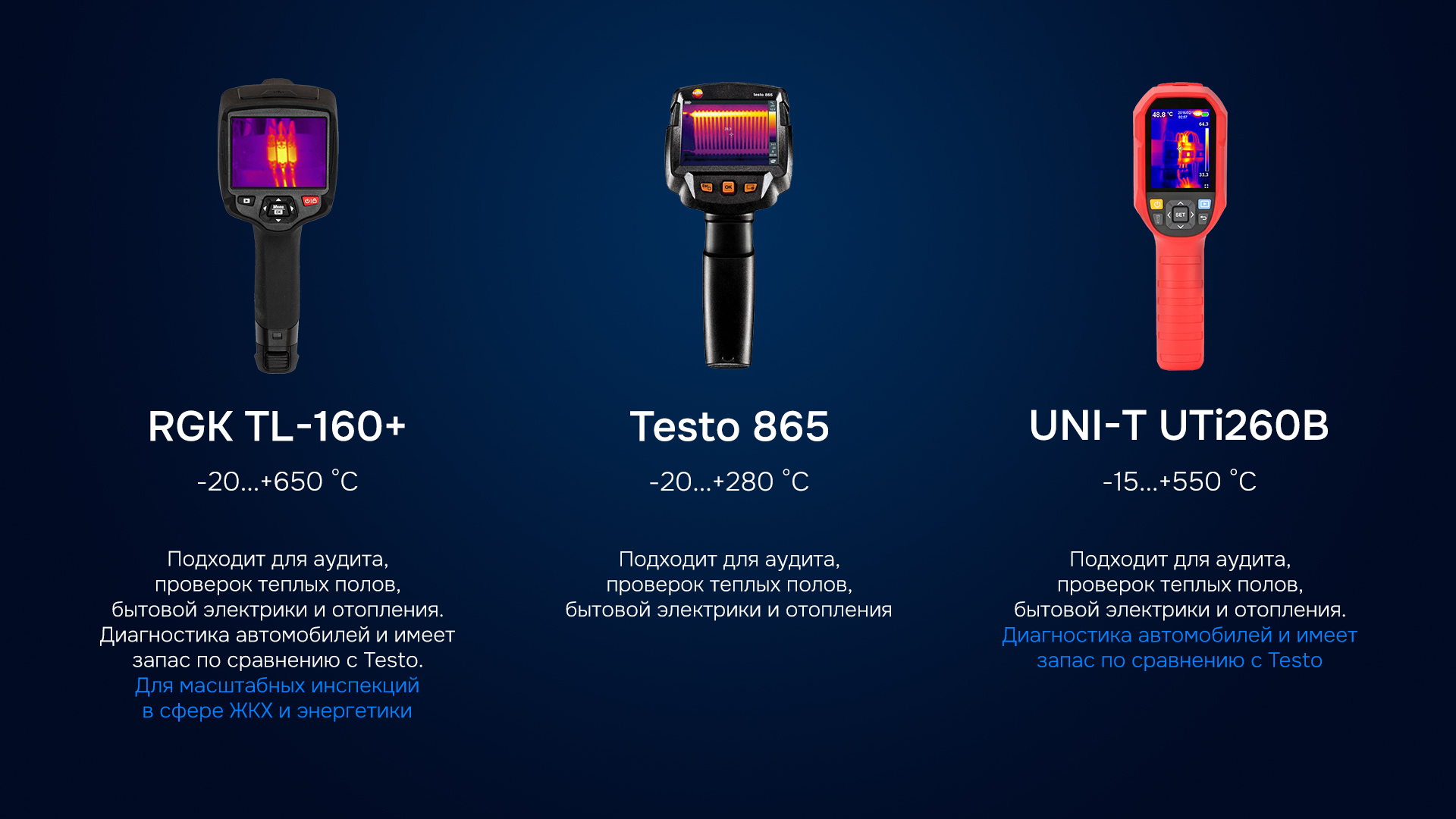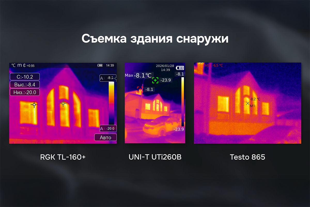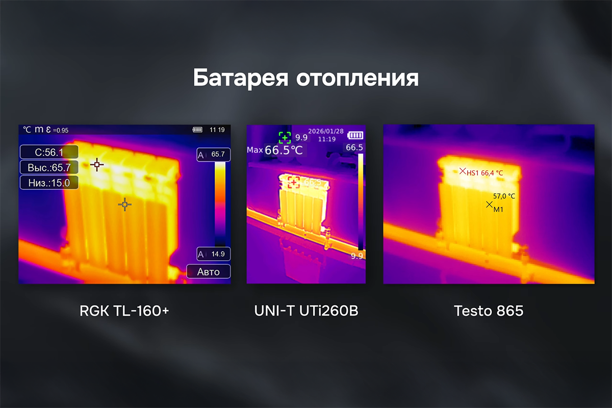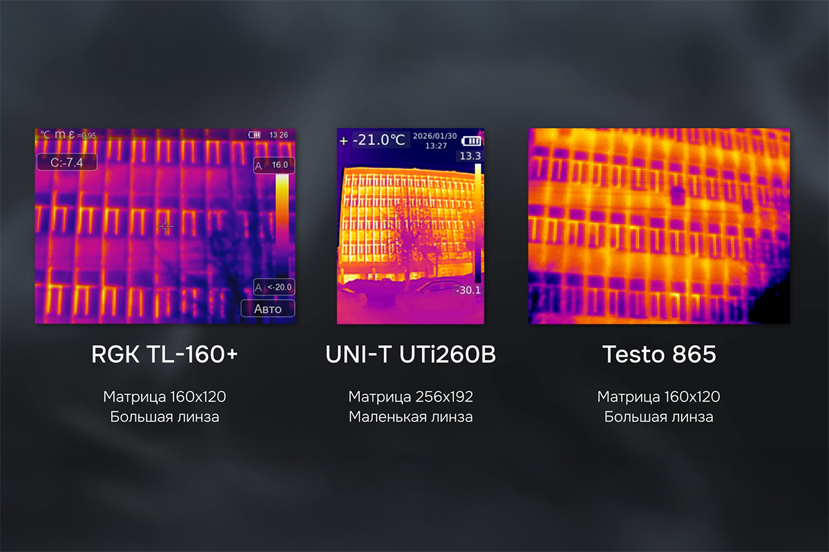 Сравнение тепловизоров RGK TL-160+, Testo 865 и UNI-T UTi260B